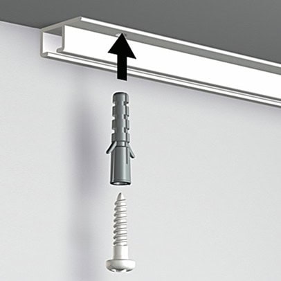 Drill: Mark the drilling spots for the clips that will attach your rail to your wall, drill 3 holes per metre and one at each end of your track.