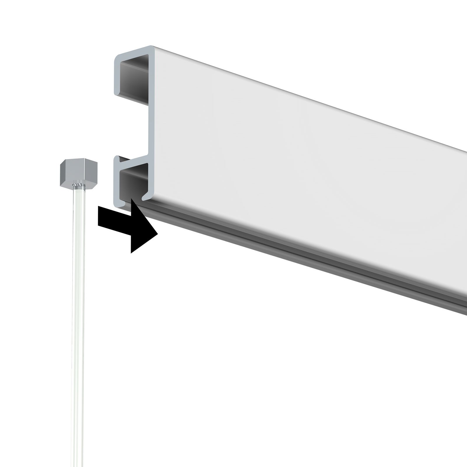 - Side-feed insertion – slide the square head into the channel and move it freely; you canโt lift it out mid-rail, so artwork stays secure.